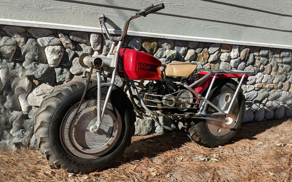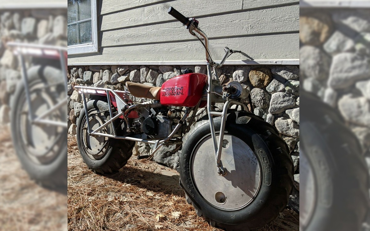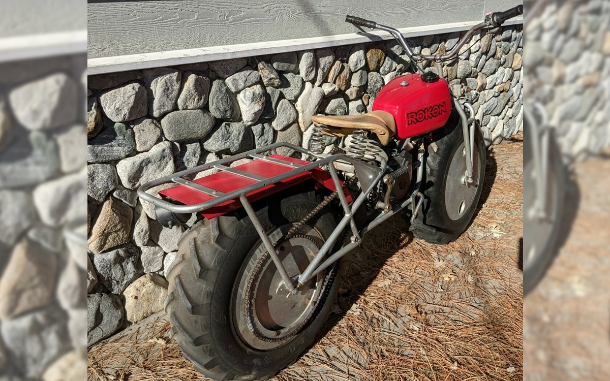 It’s hard to believe that one of the toughest, most-rugged motorcycles ever, one that even goes so far as to have both wheels providing power, is related to the owner of a women’s makeup empire. No, really. The seller has this particular 1971 Rokon Trail-Breaker MK4 listed here on eBay in Running Springs, California and the bids are at $1,000 but, of course, the reserve isn’t met yet.