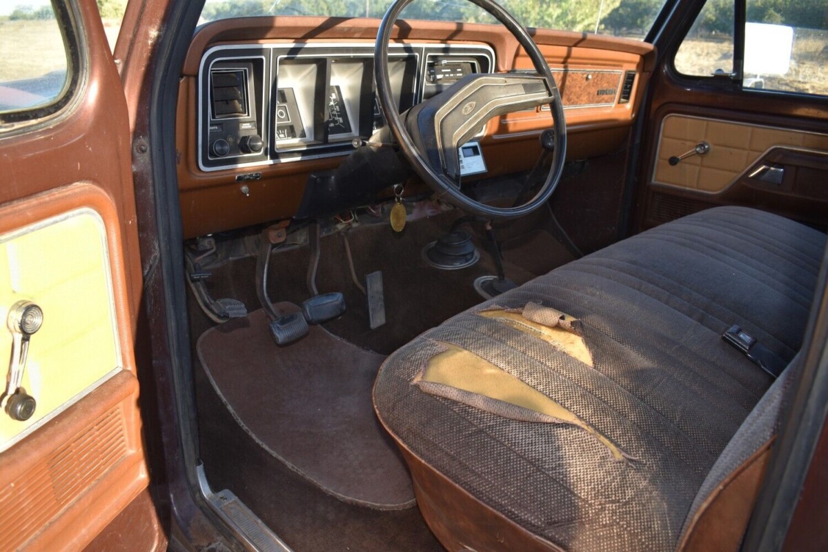 The interior is about what you’d expect for a used truck. Tattered seats, some mismatched floor mats, and one curious detail: an aftermarket cruise control system that the seller claims came from JC Penny. Now, this is not entirely surprising as many department stores dipped their hands into automotive components and accessories, from radios to CBs to air conditioning – and now, cruise control. The seller hasn’t tested it out and I can’t say I blame him; fitting cruise control to a manual transmission truck in the 80s had to involve some clever engineering. The fake wood trim on the dash still looks decent and adds some style to the interior.