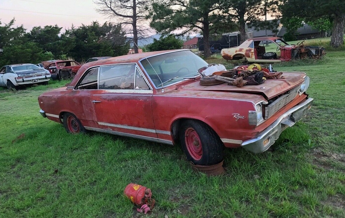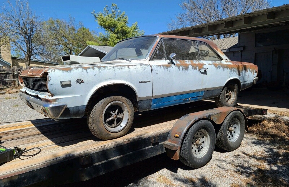 From the looks of things, this SC/Rambler has spent a lot of time baking out in the sun. The original white paint looks almost grey at this point and is loaded with patina. We’re told the floor pans are shot but the rails and frame are in good shape. The deal comes with a 1969 American 4-door sedan that could offer its floors as replacements. For other parts you might need, a 1967 American Rogue will also come along for the ride.