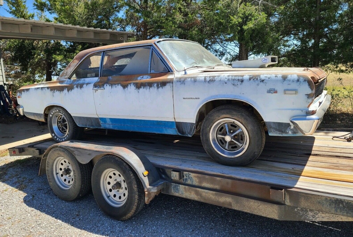 We’re told the engine has been to a machine shop and “cleaned and checked” and is ready to be rebuilt. So, we assume it’s not in the car and comes separately (bring several trailers for everything). The Hurst shifter is missing along with the Ram Air parts and front bucket seats (passenger compartment not photographed). At 315 horsepower in such a light car, the SC/Rambler was a hot ticket at the street corner drag races. Since you’re getting three cars for the price of one, does the asking price make the acquisition any more attractive?