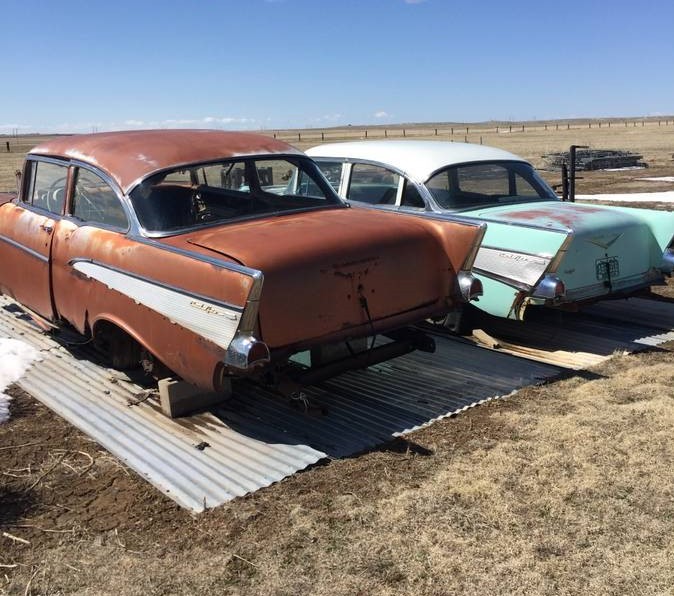 Oddly, every tri-five “chart” says white is India Ivory except for one color combo in 1957 its called “Imperial”…… so naturally most paint manufacturers started marketing “Imperial”…. which sounds to me like a Ford color so I cringe every time I see it. I Just did a road trip yesterday so probably staying home for the weekend, but it’d be interesting to go see these old hulks. I’d have thought the container car would make others curious…
