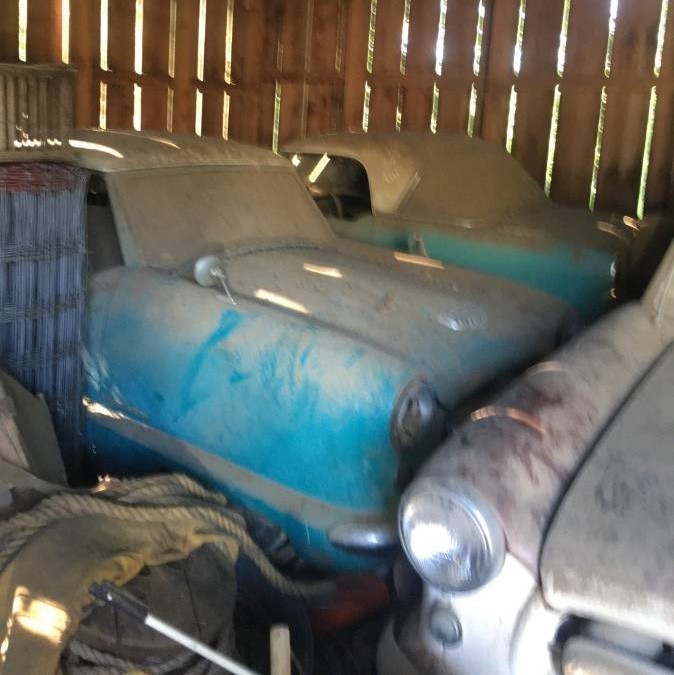 These three machines are all clustered together in an Oregon barn but how they came to be there isn’t mentioned. Two of the cars look identical, with white tops and turquoise bottom sections. Perhaps these are the 1955-56 editions. The third car looks to be white over black and white. It’s hard to tell the condition of the cars in terms of rust and other deterioration, so my first thought is to ponder whether there is enough here to take the best one or two and rebuild them using parts of the rest. The seller says the titles are clean, but also describes the cars as “salvage”. One Metropolitan is said to have been in running condition before it was stored, perhaps the white/back one, for which an old photo is provided showing it back in the day.