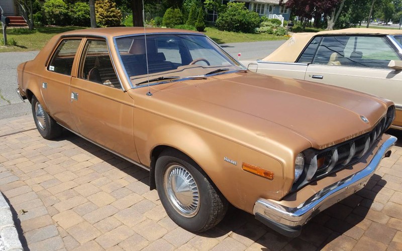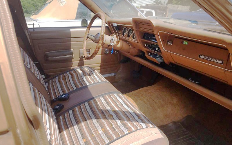 Here’s the right-rear 3/4 shot of the Caramel Tan car and it looks great other than some rust or former bodywork behind the rear wheel. AMC came out with the Hornet in the fall of 1969 for the 1970 model year and they made them until the fall of 1977. The following year, the company introduced the Concord which was based on the Hornet but was a nicer, quieter, smoother car. Make my Hornet a 1971 SC360, please. Or really any of them, they had some cool body styles for those of us who are into blocky cars as seen in the 1970 lineup.