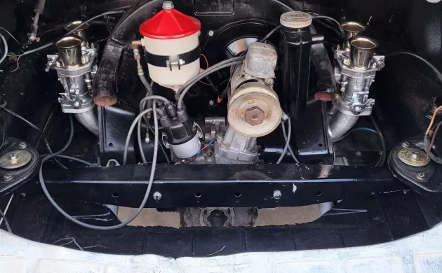 This 912 is a project all the way through, but some work has been carried out. There’s lots of trim missing in the photos, and the seller indicates that you’ll find plenty of components from trim to engine parts not present when you pick it up. Right away, the door sill is missing trim plates and door strikers; the instrument cluster and dash appears to be missing some cosmetic finish pieces; and the door panels show no hardware (and panels themselves are trashed.) Photos in the listing appear to show new floors installed, and the seats are in decent shape. The seller notes “…front repair section welded on at some but needs finishing,” but that doesn’t tell us much about the quality of the work actually done.