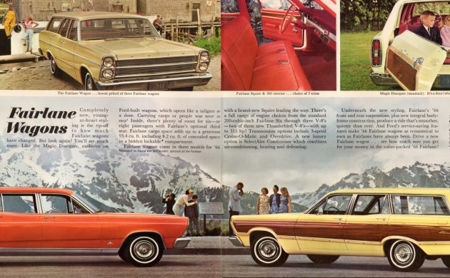 Those old station wagons keep on rollin’, and today’s discovery, courtesy of Zappenduster, is the seldomly encountered Ford Fairlane Squire, a 1966 example to be precise. The full-size Country Squire makes BF front page news pretty often, so this smaller, intermediate Fairlane Squire is a welcome review topic. This one is unusually equipped, so let’s take a closer look at this resident of Fruita, Colorado. Here on craigslist is where you’ll find it, and it’s available for $15,500.