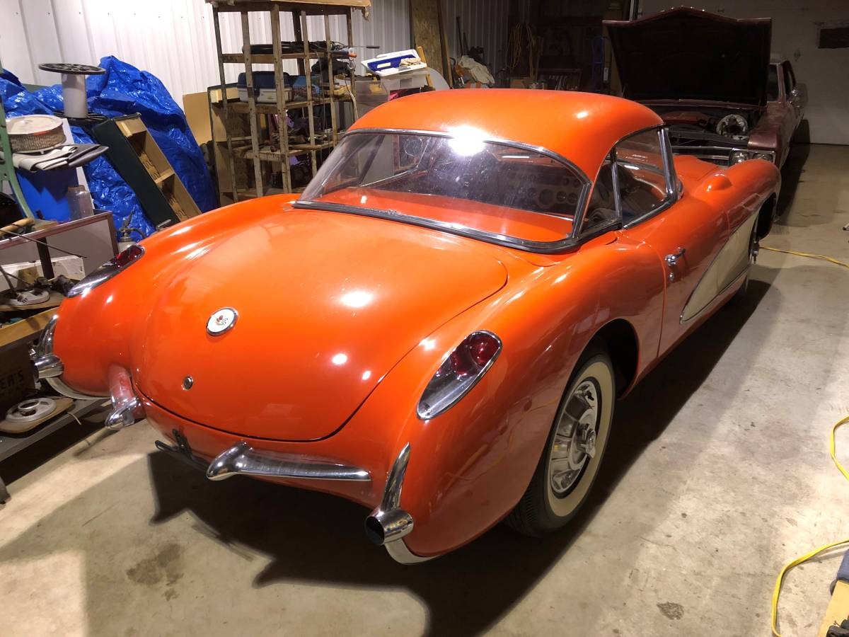 A friend of mine just picked up an identical Gypsy Red 56 2×4 3 speed car about a month ago. It had been stored with an equally nice 58 in a garage in Maryland, for over 20 years. He bought the 58 too!