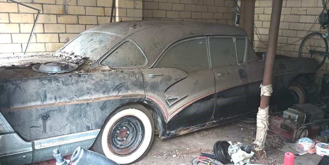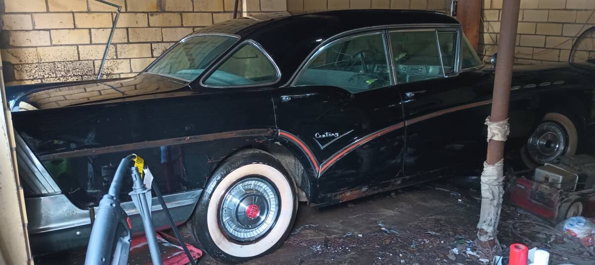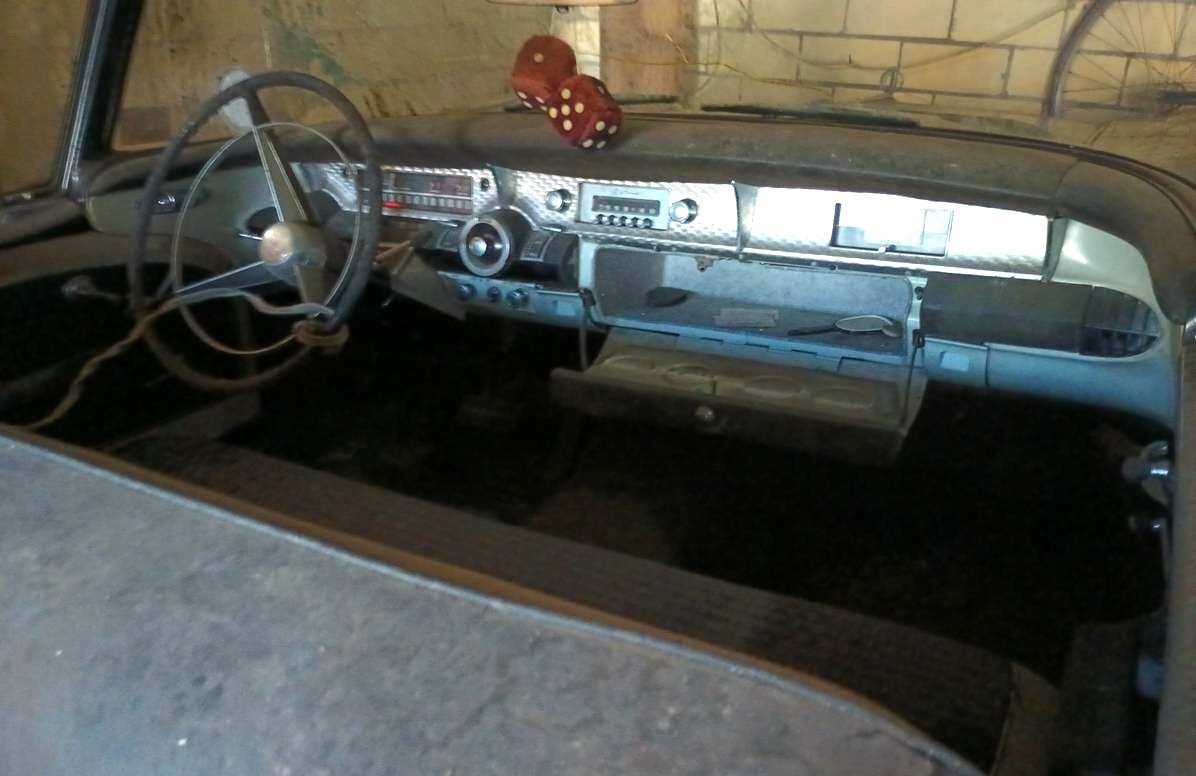 Not all of the auto’s exile was spent indoors. It sat under a tree for several years and the outdoor exposure helped rust out the floorboards, rocker panels, and probably other places we can’t see so well. Most of the chrome is still present even though not attached to the Century. If the rear seat is any indication, the interior may have held up fairly well. No photos of the engine are provided, which should be a 364 cubic inch “Fireball” V8. The car just received its first wash in ages, which is reflected in the last photo.