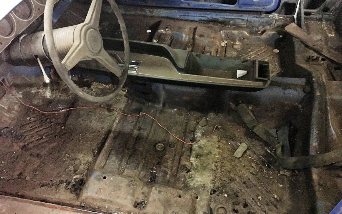 The seller claims they are the second owner and that they’ve had it since 1976. There’s no word on exactly when the paint job was done, but it’s probably safe to assume it was done around the time that it was parked. They note that there are runs in the clear coat, but that painted it in hopes of keeping it from rusting. Speaking of rust, the floors aren’t the worst I’ve ever seen but definitely need work. It would be helpful if they would vacuum up all the dirt and debris for a better look at the issue. It would also be nice to know what interior parts are missing, as they state the interior is 90 to 95 percent complete. So where did the other 5 to 10 percent go?