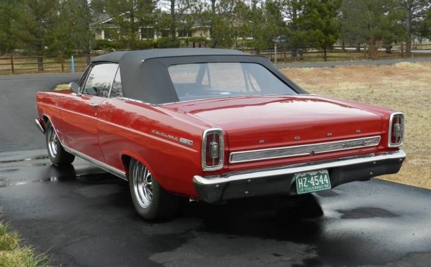 Candy Apple Red paint adds to the appeal of the vehicle, and it looks fresh. The floorboards were replaced when the interior was refreshed, along with (we think) the black convertible top. The 15-inch “bone” wheels really set off the whole package. We don’t know the history of the Fairlane other than it’s had the same caretaker since around 1995. Could this Ford be part of an estate sale? Because if it were mine, I’d be holding on to it.