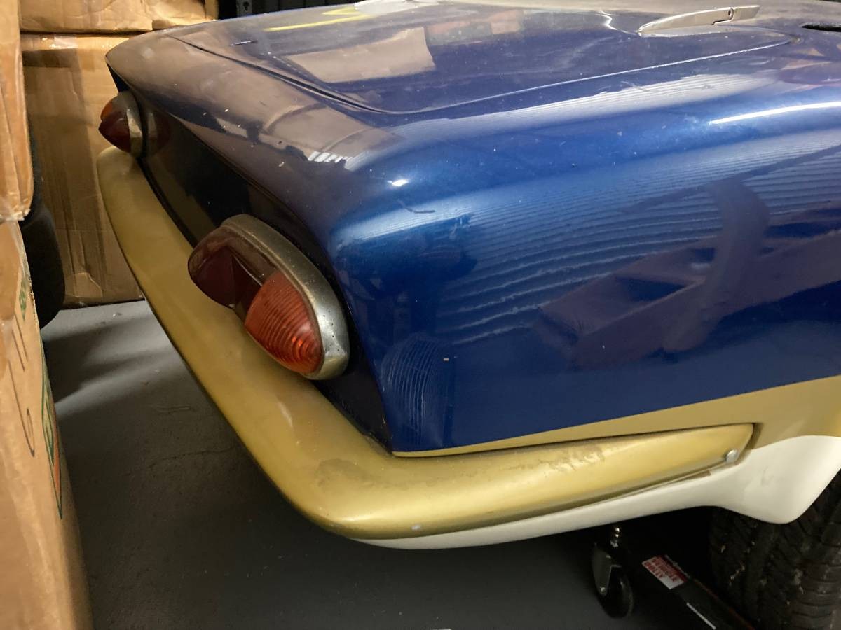 Looking closely some small damage spots can be found in the paint finish. I believe the bumpers are fiberglass as is the body, so painting rather than a chrome appearance is expected.