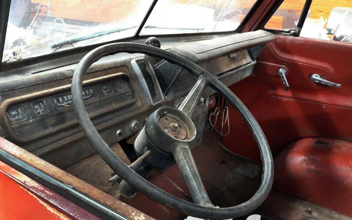 Unfortunately, the good photos end with the opening image. The others are mostly detail shots of parts and sections of the truck but there aren’t any more overall photos. You can tell from that opening shot, though, that there will be a lot of rust to fix on this A100. Parts of the truck look good and solid but the lower extremities, as they say… are in somewhat rugged shape. They mention that the front and rear bumpers are also missing, along with the engine and transmission. And, the rear window. The next owner will have their work cut out for them, no pun intended, in fixing the rust and putting Humpty back together again.
