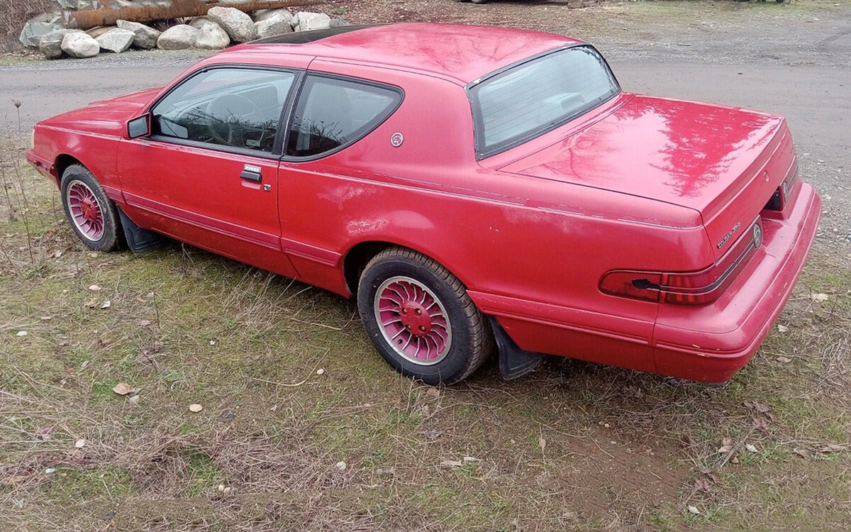 The sixth-generation Mercury Cougar was built on the Fox platform (as mentioned previously), which it had been in the previous generation, too. They were made for model years 1983 through 1988 and this example is the XR-7 trim level. This car has the optional XR-7 monochromatic wheels in body color, which in this case is Medium Scarlet. For some reason, the seller only provided two exterior photos, but they say that there are no dents or dings.
