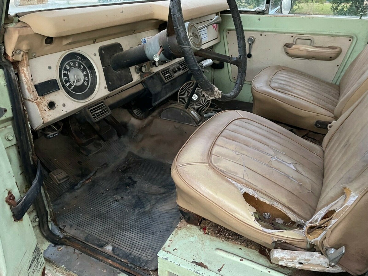 This Bronco is a three-owner survivor that wears its original Winter Green paint. Nobody has ever treated it to any restoration work, but more importantly, no one has cut the fenders to accommodate larger wheels and tires. This is a common modification, and while the ready availability and affordability of replacement steel make this modification easy to reverse, it is one less task to add to the list for this Ford’s buyer. There are a few changes that the new owner will probably choose to reverse, including removing the additional fuel tank and filler, along with ditching the bullbar on the front. Considering this Bronco has spent its life in Texas, I’m slightly surprised by the amount of rust that the buyer will need to tackle. Externally there is very little that has penetrated, with the most obvious being some repairable spots in the lower tailgate. Any other exterior rust seems to be essentially surface corrosion, although the news is less favorable when we delve below the surface. It is no surprise that it has impacted the floors and the usual rust trap in the front inner fenders. None of these problems would pose a massive challenge for anyone with reasonable welding skills, but the rust in the lower A & B Pillars on the passenger side should be left to a professional. These represent structural issues, and the repairs would need to be completed to a high standard to maintain vehicle integrity. It appears that most of the trim is present, with the damage-prone hubcaps appearing excellent.