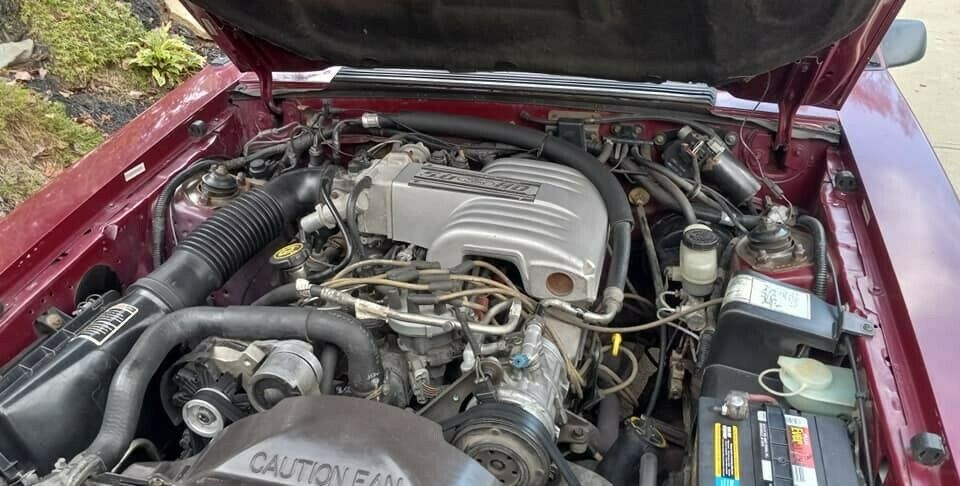Opening this Mustang’s doors reveals one of the few modifications that this car has received. A previous owner swapped the original shifter for one from the good people at Hurst. However, the original is included for future owners wishing for a more stock appearance. The interior is a sea of red trim and upholstery, and its overall condition is extremely good for its age. It looks like there might be a small rip in the driver’s seat outer bolster, but since it hasn’t progressed too far, a competent upholsterer might be able to blind patch the fault. If perfection is the goal, finding a set of covers in the right material and color is easy, and the buyer will be looking at around $720 for a pair of front covers. Otherwise, the plastic is in good order, there are no issues with the remaining upholstered surfaces, while the dash appears faultless. Creature comforts include air conditioning, power windows, power mirrors, cruise control, and an AM/FM radio and cassette player.