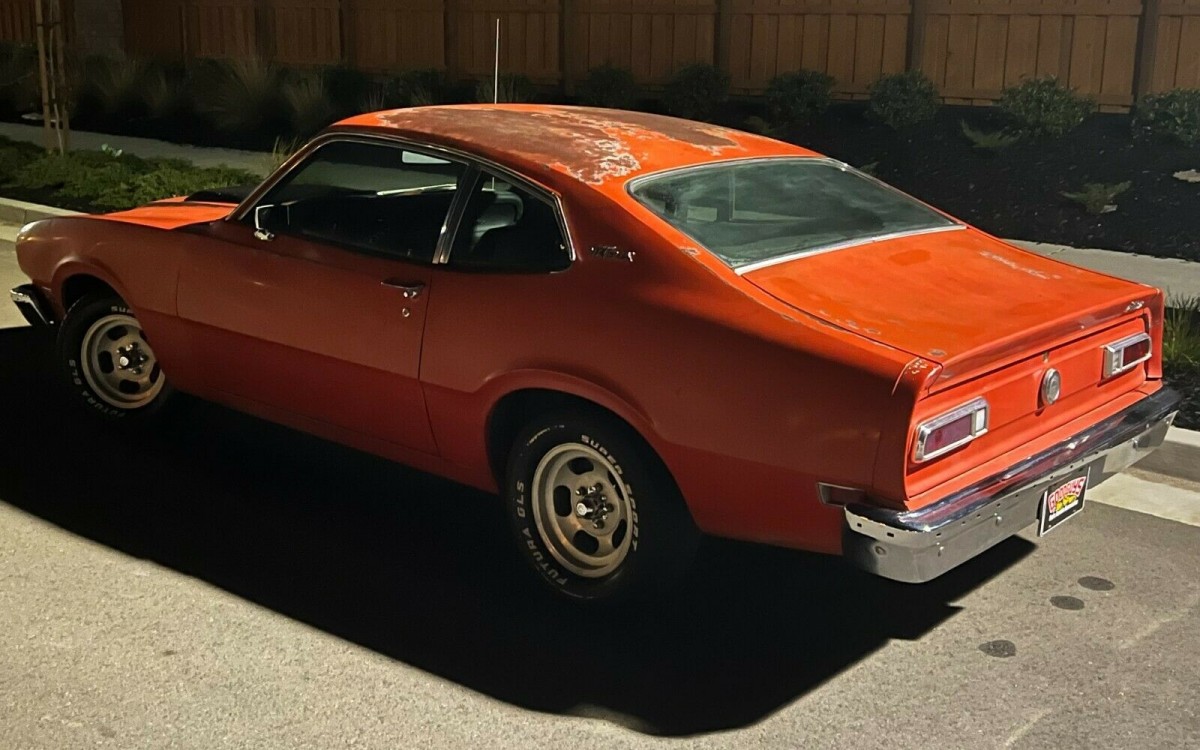 The Maverick being offered for sale here is believed to have been a Northern California car its entire life. It’s still wearing its original paint, which is showing some surface rust but has been clear-coated to help contain it at the current level. The seller says there are no signs that the car has had any bodywork or outside repairs, and that the front and rear bumper mounting brackets have been shortened to make the bumpers closer to the body for a better look. The floors, trunk, rockers, and torque boxes are all said to look nice as well.