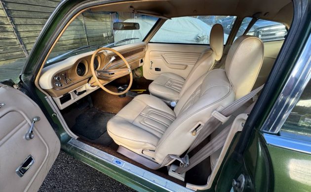 The interior of the LDO Maverick actually does look fairly luxurious, with cushy bucket seats and upholstery that matches period literature. The seats sent me looking for factory images because they look so modern and well-bolstered, and they apparently recline, a feature that wasn’t common on American cars in the 1970s. The Luxury Decor Option also had woodgrain trim on the dashboard (used sparingly), and “European-type armrests.” The seller says that the interior as a whole is in “mint condition.”