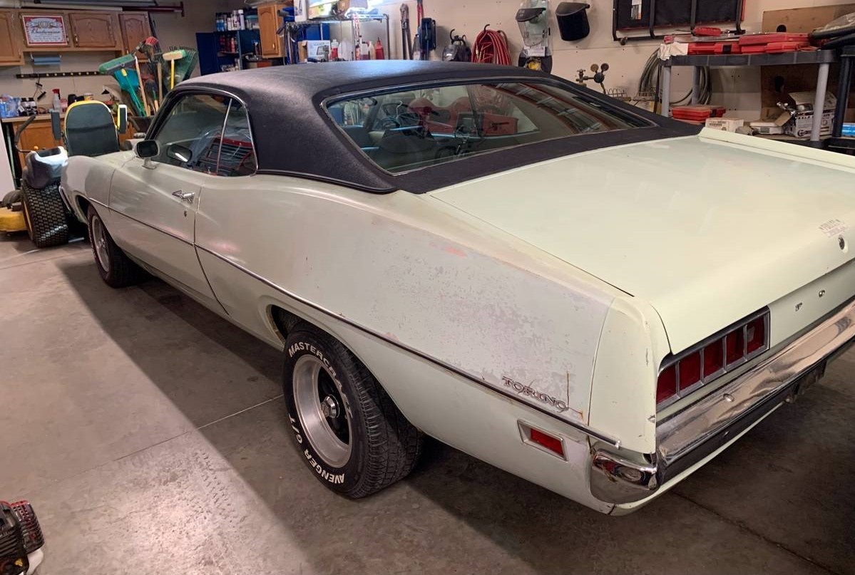 While the paint warrants refreshing, it would present capably for a while. A bit of rust in the lower extremities of the quarter panels needs attending to as does the left rear frame rail. The vinyl top, which I always thought looked out of place on these Torino’s, looks to have no issues. Fix these other items and you could drive it with confidence to Cars & Coffee. With the aftermarket mag wheels, it looks as though it might go faster than it does.