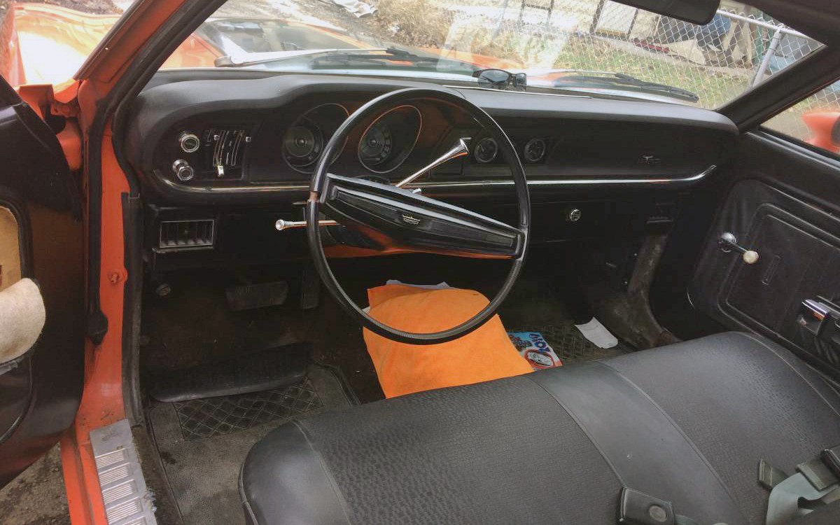 I’m loving the Calypso Coral orange, which looked great on the Boss 302’s in 70. It looks great here. The price is ambitious, but I’m picturing this Grabber decked out in all the factory Ford performance gear going on in their engine compartments back then. Dare I say, a real Boss 302 V8 (if it’ll tuck in there!)