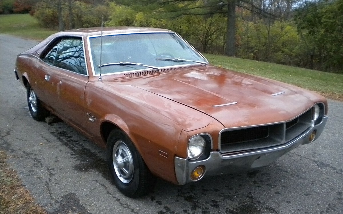 I work on a fellows 68 AMX and while I like the car I prefer the early Javelin because the longer wheelbase gives the car a more balanced appearance. I’d be leery on this one until I could look underneath as Cincinnati climate is harder than most for classic cars. From what I see here this one has promise. Swap out the 290 for a 390 since it’s the same block and since there are no numbers matching AMC’s no big deal.