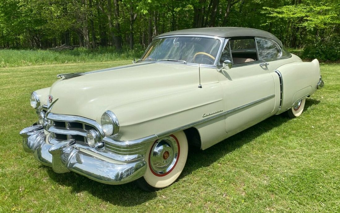 When Cadillac received a restyling in 1950, it marked the first time the Series 61 used a shorter wheelbase (about 4 inches) than the Series 62. Although the Series 61 was the lowest-priced Cadillac and had less chrome and not as fancy of an interior as the Series 62, it was still a Cadillac, The Standard of the World. This pampered coupe, finished in an attractive French Gray with a Savoy Gray top, has been owned for 30 years by a third-generation retired Cadillac dealer. The seller provides a fair number of photos and descriptions, stating the paint is totally original with a few minor flaws and one touchup that are shown on three photos. The only other flaw mentioned is a 3/8” chip in the windshield on the top of the passenger side, but a NOS, original 1950 Cadillac windshield is included with the car. The seller also states that “The chrome is original and excellent (NOT REPLATED).