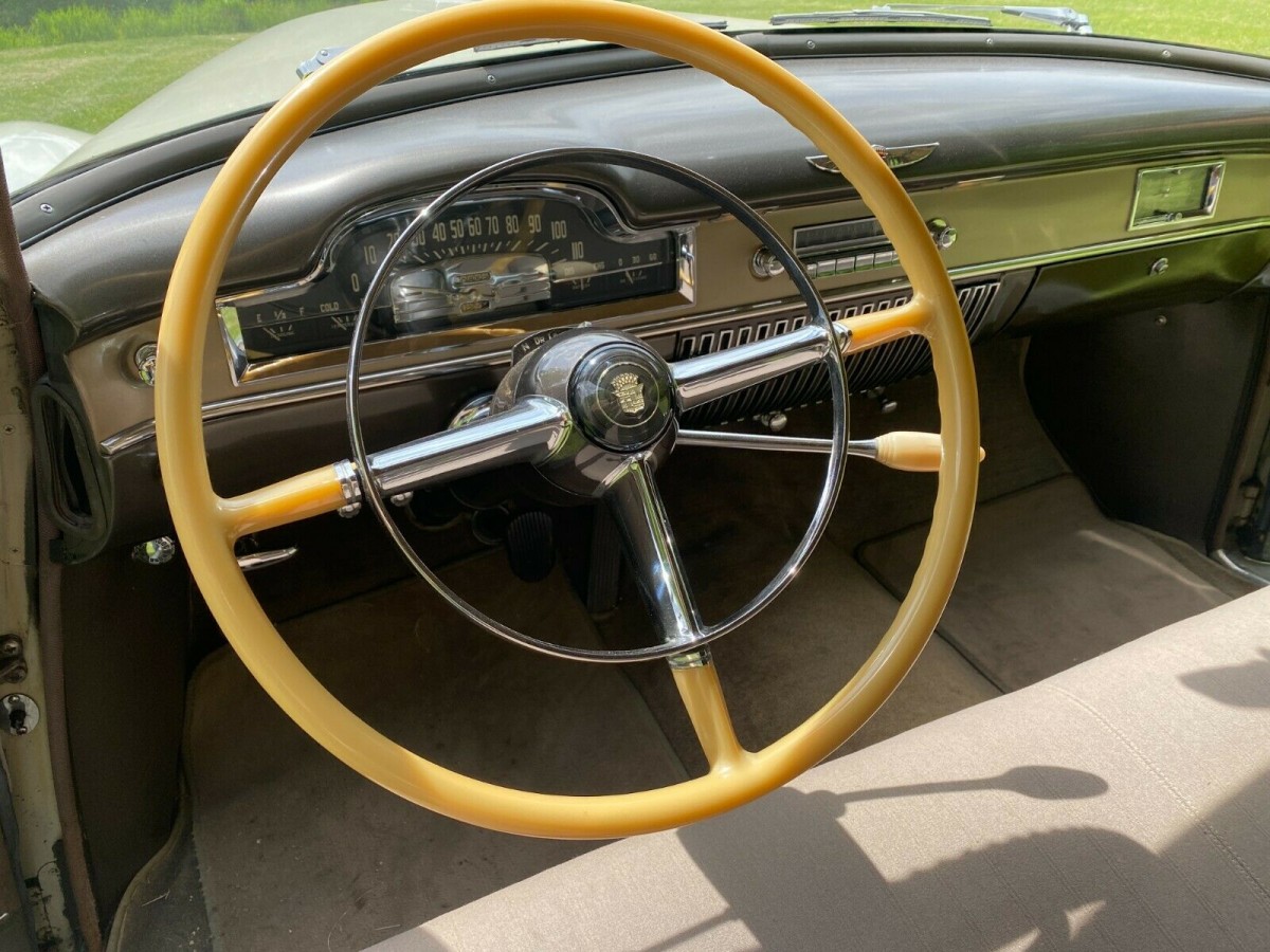 The interior of this 71-year-old Cadillac is truly remarkable. There is very little (if any) visible wear on the driver’s side seat or armrest. The photos tell the story of how well it is preserved and support the seller’s claim that “The interior is totally original and in near perfect condition. It is nearly impossible to duplicate this original fabric. The steering wheel is excellent as is the interior chrome.”