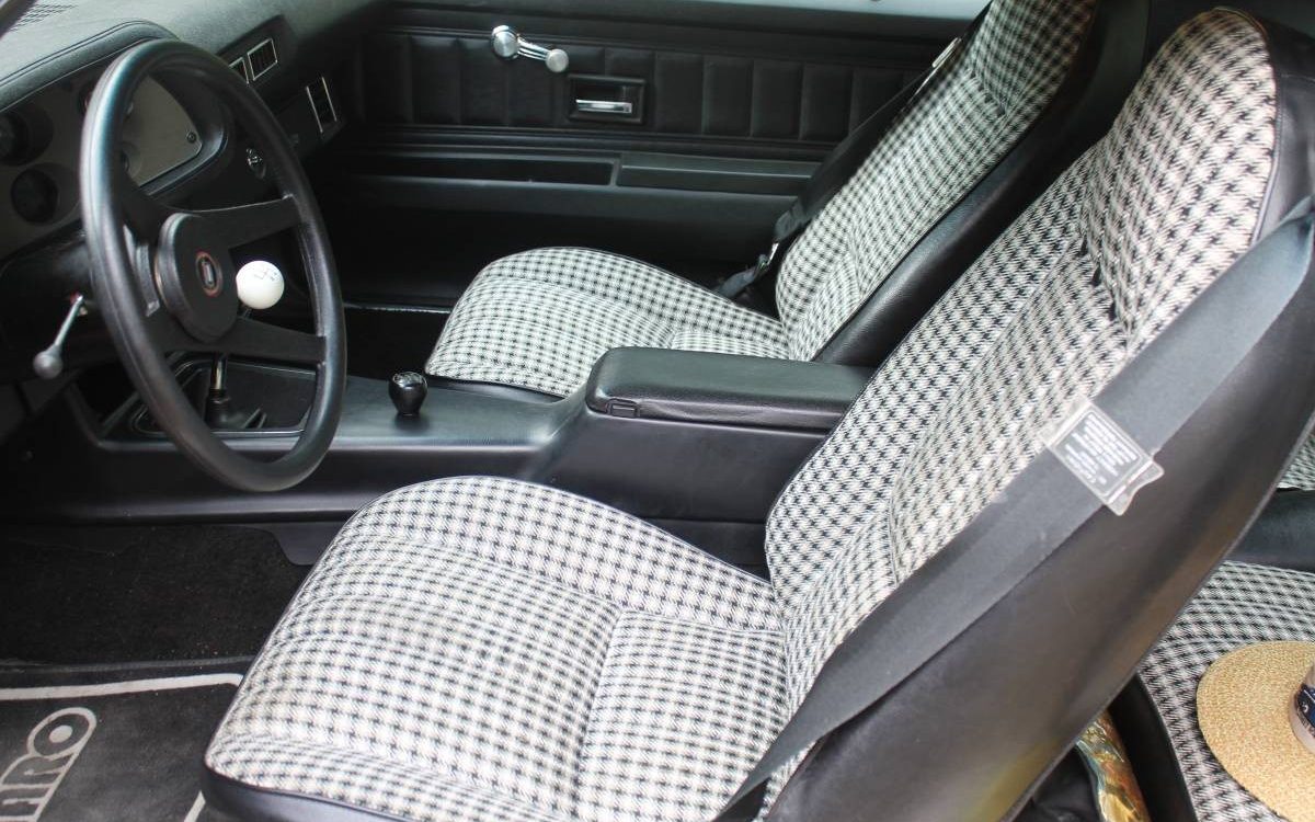 The snappy houndstooth upholstery adds some class to the otherwise all-business black interior. The white “cue ball” shifter looks magnificent and certainly suits the Z28’s original purpose as a Trans-AM road-racing assault weapon. “Camaro” script on the floor mats comes in handy if you forget you’re driving one of the ’70s’ most recognizable vehicles.