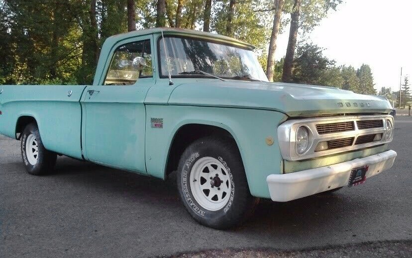 Coming onto the market even before I was born, which is surprising, Dodge’s new D-series pickups came out in the fall of 1960 as 1961 models. This Medium Green example, a 1969 Dodge D-100 Sweptline, can be found listed here on eBay in beautiful Eugene, Oregon. The current bid price is just over $2,500 but the reserve isn’t met yet.