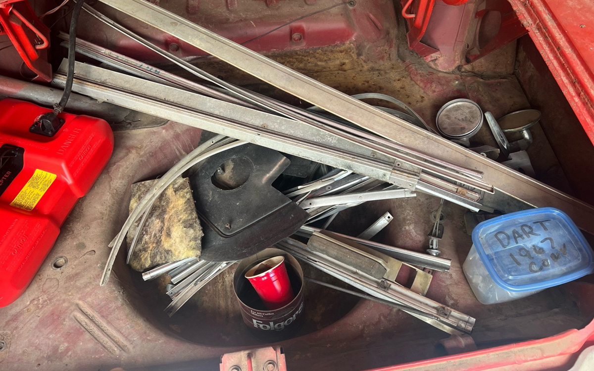 Dodge made the fourth-generation Dart from 1966 for the 1967 model year until the end of 1976 for North America. This paint should be “Bright Red”, even if it’s a bit faded on the exterior. The Dart GT was available with engines ranging from a 170 to a 225 slant-six, and also a 273 V8, which this car came with from the factory. The GTS came with a 383 V8, which is what private eye Joe Mannix drove after his infamous George Barris custom Toronado convertible. The seats look good, other than the small flaws in the front seats, but the back seat looks like new.