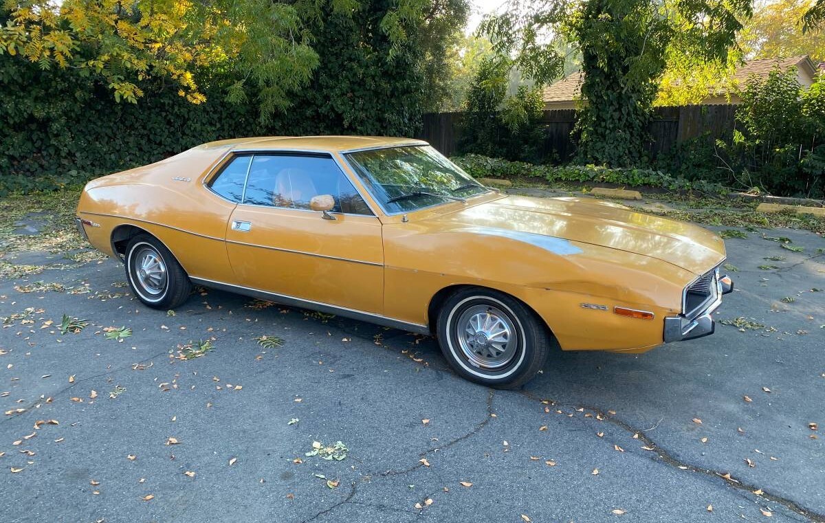 I oncologist owned 1974 javelin I bought it and needed a car right away because my 1968 ford l t d got totaled out I bought It for three hundred and seventy five dollars it was orange 🍊 with bias tires,brand new snow tires too with dog dish hubcaps rusty and a three o four engine automatic transmission. It had not enough power but would start up no matter how cold it got outside the interior needed fixing to I don’t know how accurate the mileage was either. Me and my friends tried beating the ?@&$@ out of it it wouldn’t die very depending,sucked the gas ⛽️ too.if I had the money and a place to keep it i would have made it souped up and a different color lol!