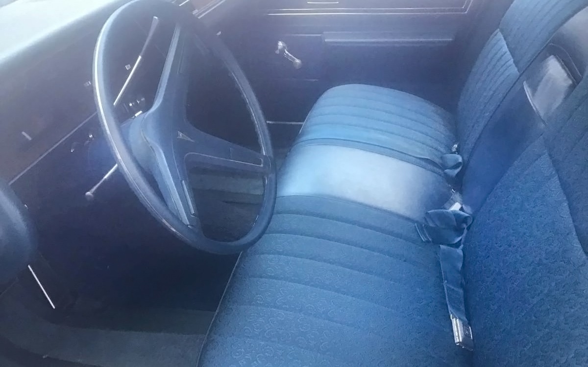 The interior looks beautiful with the nice, blue brocade fabric seats both front and rear. Not having power windows in a luxury car doesn’t seem to have been as big of a deal in this era but I always notice when a big car that was about the top-of-the-line for any car maker doesn’t have power windows and power locks. One thing that’s missing by this point in most cars would be the wing windows or vent windows in the front. I wish those would come back but as with operable windows in office buildings, they probably never will, at least on a large scale.