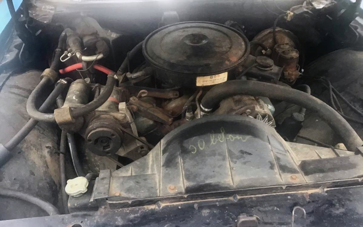 Unless I’m mistaken, this car appears to be wearing possibly its original bias-ply “triple-stripe” whitewall tires? Other than the left-front tire which is a dual-stripe tire. The seller mentions that it could use new tires – yes if they’re decades old, or even a decade old, that’s very true. My ’66 Lincoln Continental coupe had “brand new” bias-ply tires on it but they were four decades old and even though they looked like new, they probably weren’t too safe for use on public streets.