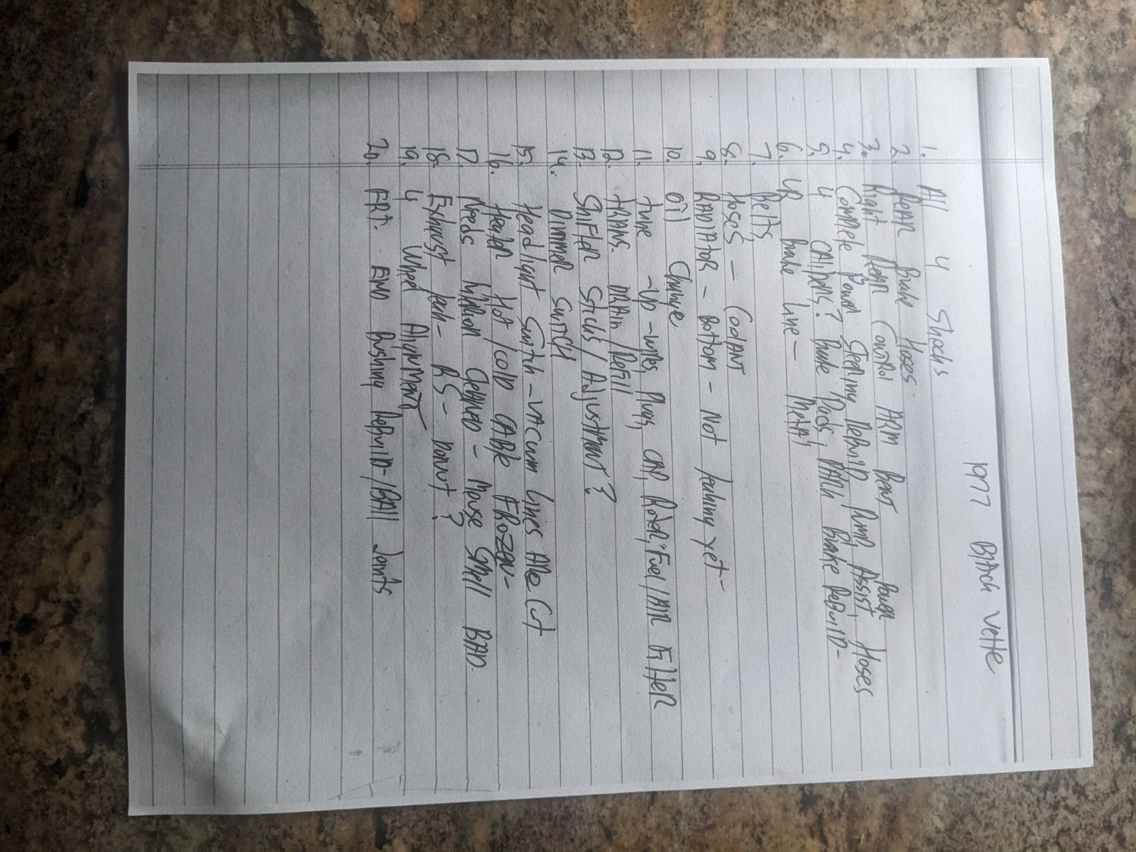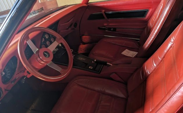 The Corvette is said to be running and driving, but I’m guessing its operation is either infrequent or that most of the miles were put on earlier in the car’s life. Some of the mechanic’s recommendations for the engine include a tune-up, replacement belts, an oil change, and new radiator hoses. It’s a plus that this one’s got a 4-speed manual, with a shifter stick adjustment also on the to-do list, but with a question mark beside it.