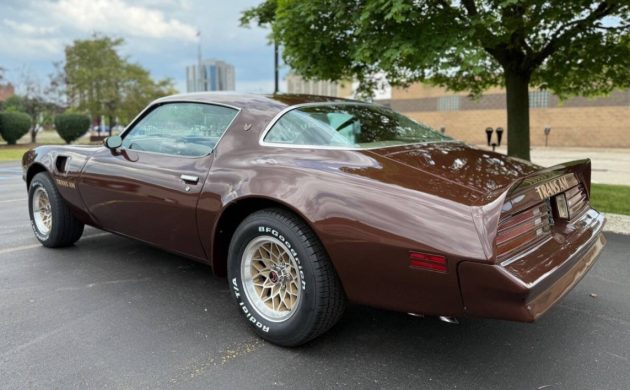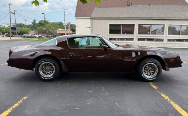 Pontiac treated its entire Second Generation Firebird range to a facelift for the 1977 model year, adding a new nose and dual rectangular headlamps for a more aggressive appearance. The updates struck a chord with buyers, resulting in the Trans Am setting a new sales record of 68,744 vehicles. The first owner ordered this 1977 model in Brentwood Brown, with the car featuring the typical contrasting Gold decals and the iconic Screaming Chicken. The seller emphasizes this classic’s originality, with no mention of repairs or restoration. The paint shines nicely, there are no obvious panel defects, the decals are free from checking, and the seller assures us that this beauty is rust-free. The tinted glass is crystal clear, and the Trans Am rolls on a spotless set of Snowflake wheels.