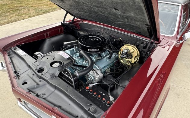 It wasn’t unheard of for buyers to order a four-speed with two-barrel engines, but so few seem to have survived intact that it’s a treat to see something so equipped. The basic V8 in the LeMans was the 250-horsepower regular-gas-burning 326, which also made 333 lb.-ft. of torque. With the four-speed, the standard real axle ratio was 3.23:1, which was perhaps the perfect compromise for acceleration, fuel economy, and driveability. The engine in this Code N “Burgundy” LeMans has been completely rebuilt, the brake booster and master cylinder have been replaced, and the radiator is a four-row Harrison unit. The selling dealer has posted a video of the LeMans starting and idling: it sounds great!