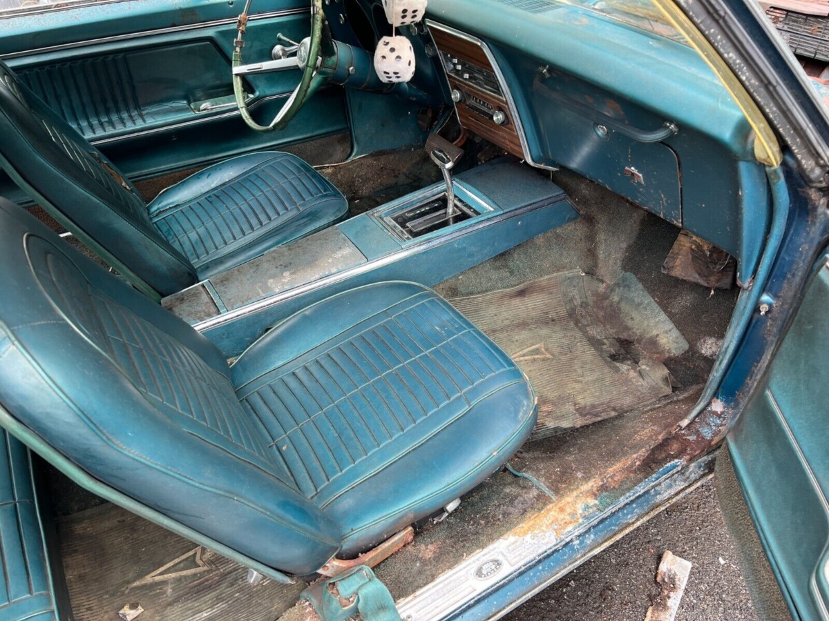 The body has its share of bumps and bruises, and there is some rust in the sheet metal but it doesn’t appear to be rampant. We’re told the floorboards may be weak and more investigation will be needed to determine their condition. The paint might be original to the car and the seller advises this is a one-year-color which would look great when a new finish is applied. The interior, too, comes across as original though the vinyl is likely old and brittle and the carpeting and steering wheel will need replacing.