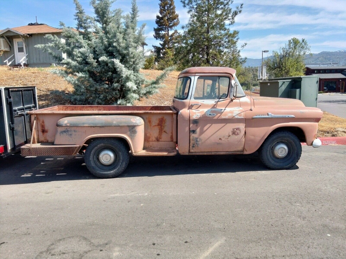 The drivetrain of this Chevy is a bit of a mystery, and the owner doesn’t give us a lot to work with. Chevrolet offered the 1958 Apache with a choice of a 235.5ci six or a 283ci V8, but this one features neither of those. Someone has slotted a 327 under the hood, and I believe that it is backed by a 3-speed manual transmission. It isn’t clear where the 327 came from or what its specifications are. However, there is no doubt that if it were in good order, it would pump out more than the 160hp that was produced by the 283. The owner says that the 327 does run, but he doesn’t indicate whether the Apache will move under its own power. However, the accumulated leaf litter at the back of the intake and the presence of cobwebs suggest that the Pickup hasn’t seen a lot of recent use. The buyer might consider performing a further engine upgrade as part of their project build. However, if the 327 is in good health, it should offer the sort of performance that would make it difficult to justify any further upgrades.