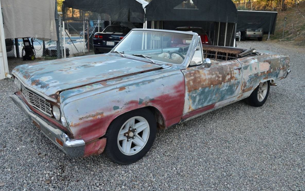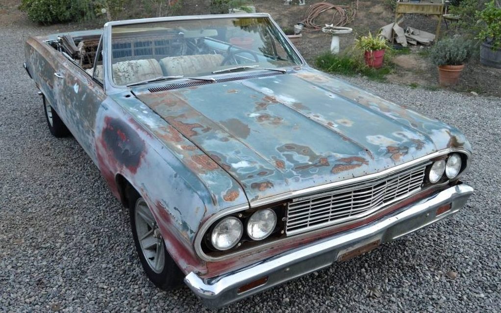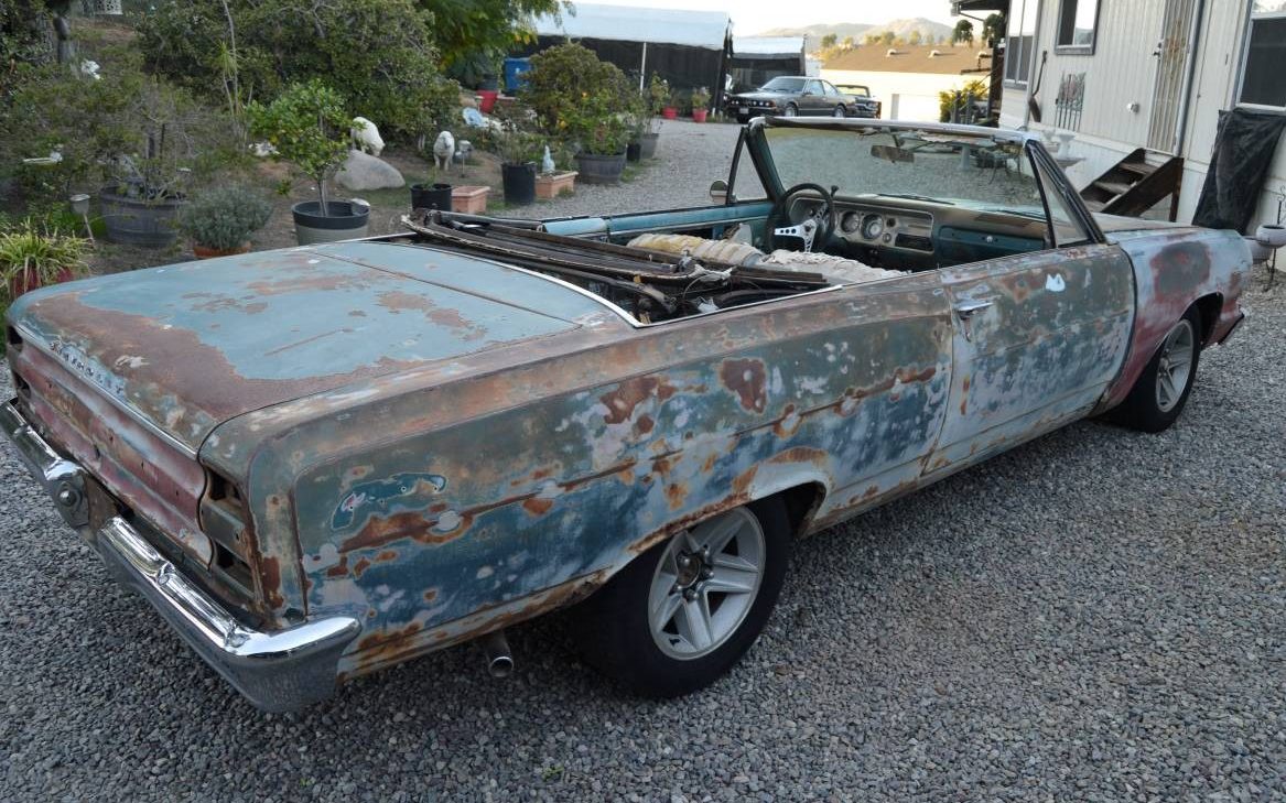 OK, this one’s a conundrum. It’s a highly desirable non-SS, 1964 Chevrolet Chevelle Malibu convertible, but it could also win an ugly car award. It has also undergone some mechanical changes so let’s see if we can figure out if there’s a pony under this pile. This Chevy is located in El Cajon, California and is available, here on craigslist for $9,750.
