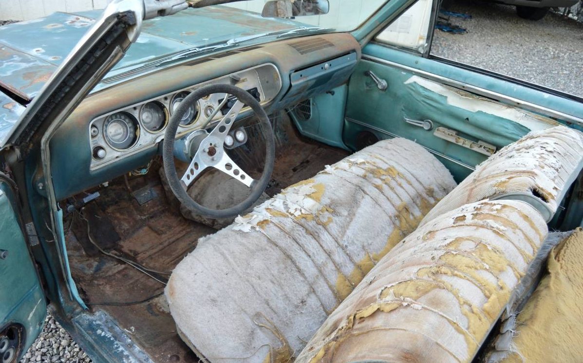 This Malibu convertible was born with a 230 CI, in-line six but now boasts a 327 CI V8 of unknown provenance. The 327 engine, in both 250 and 300 HP flavors was available in the ’64 Chevelle but not until the mid-model year. This running example’s powerplant looks like a 250 HP variant, but that’s just an observation and not confirmed. The gearbox is referenced as an automatic which makes me think it’s a Powerglide. The comment made, “Driveshaft is included as well as some other loose parts” has me scratching my head – why would the driveshaft not be included?