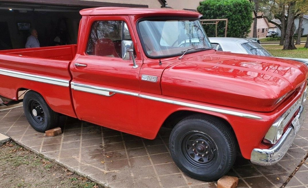 GM built the C/K series of trucks between 1960-02, with the “C” designating 2-wheel-drive and “K” for 4-wheel-drive. The first generation ran through 1966 and included this 1965 C-20 which is a ¾-ton, short-bed pickup. This one has been nicely restored and a recent hit on the show circuit. It has a new crate motor and a TH-350 automatic transmission. Located in Spring, Texas, the red truck is available here on eBay where the bidding has reached $9,100, but the reserve is still open.