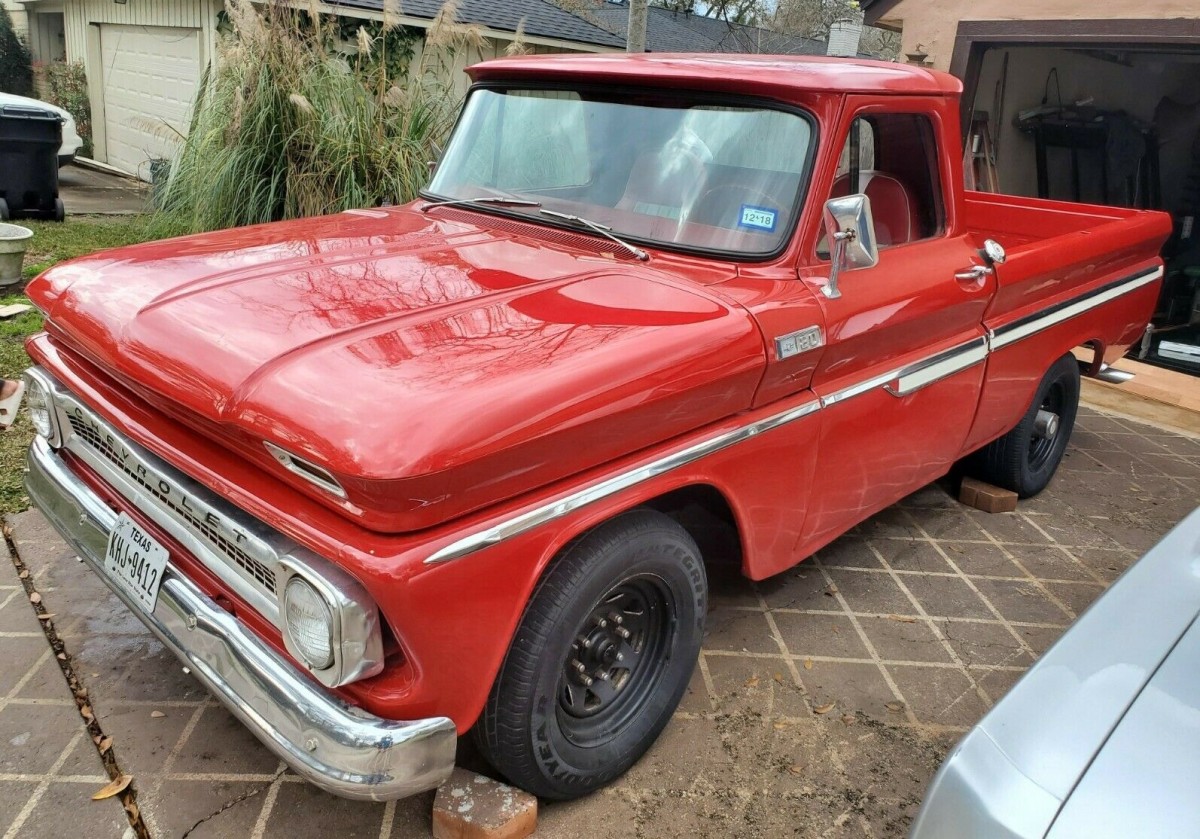 The 327 V8 was new to the Chevy trucks in 1965 and one lies under the hood of this pickup, though not numbers matching. It’s a crate motor and paired with a floor-shifted 3-speed automatic that’s instead of the 2-speed Powerglide was the only shift-free available at that time. The seller makes a point of saying that throughout the restoration, all the work has been done to meet DOT requirements, although I don’t know why that needs to be stated. It’s a good runner, although we wonder why all four wheels need to be chocked while it’s sitting idle in the driveway. And were eight-lug wheels standard on the ¾-ton or did these come later?