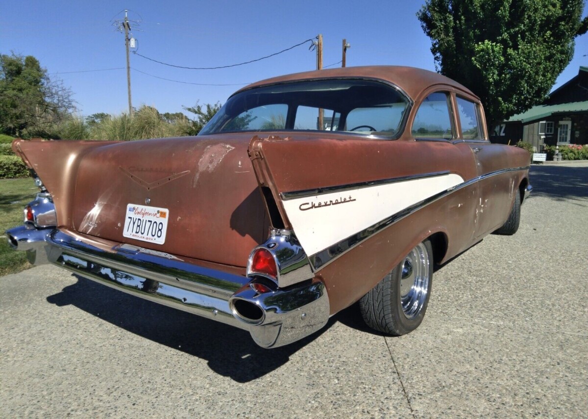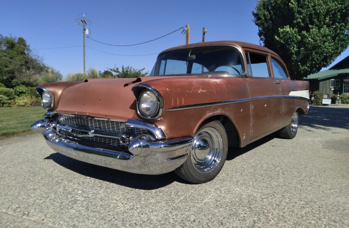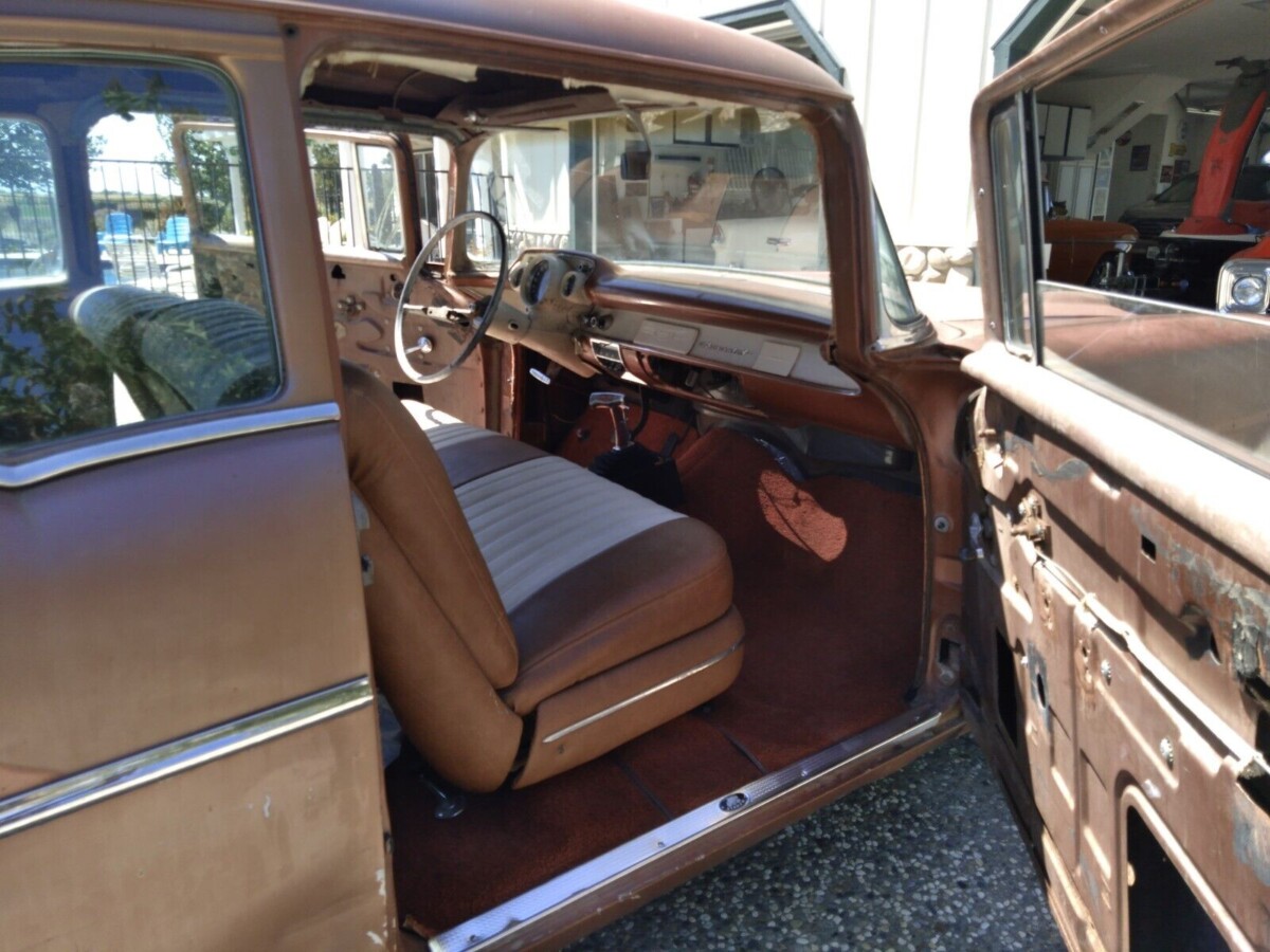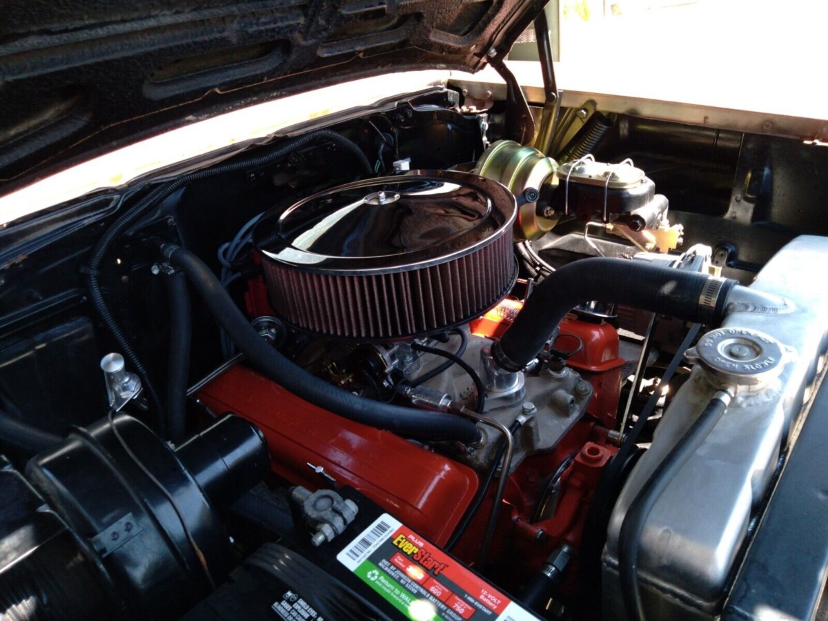 No VIN or cowl tag information is provided by the seller about this auto, so the level of trim it has does signal that it’s probably the mid-range 210 model. If so, it’s one of 163,000 2-door sedans that Chevy built for 1957 when the cars gained fins and hood spears. Because of a lack of detail, we don’t know if this car left the factory with an inline-6 or either of the 265 or 283 cubic inch V8s, but a 327 resides there now, built no earlier than 1962 (the year the engine was first offered).