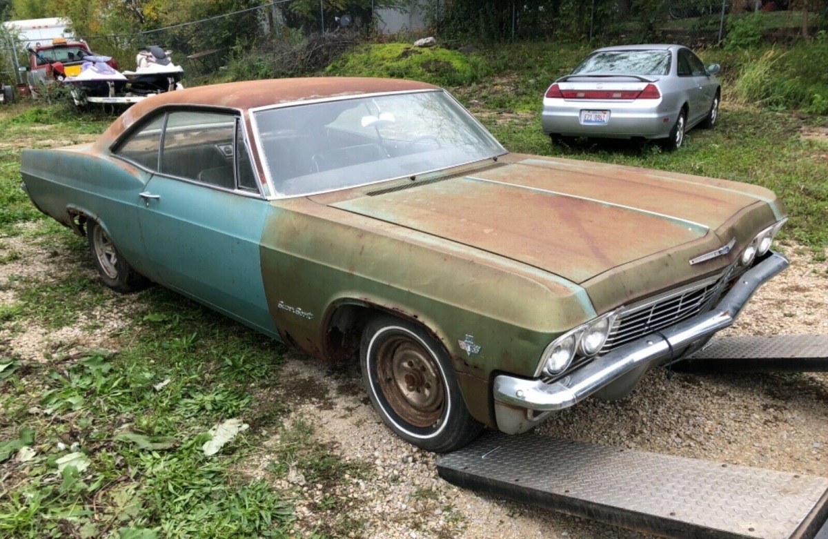 The Super Sport started as a performance option on the Impala in 1961 and only a few hundred copies were built. After that, it became more of an appearance package and less of one focused on muscle (at least in the Impala), so sales would go through the roof. This ’65 SS is said to have been running when it was parked, but that was nearly 30 years ago and time and Mother Nature have both taken their toll.
