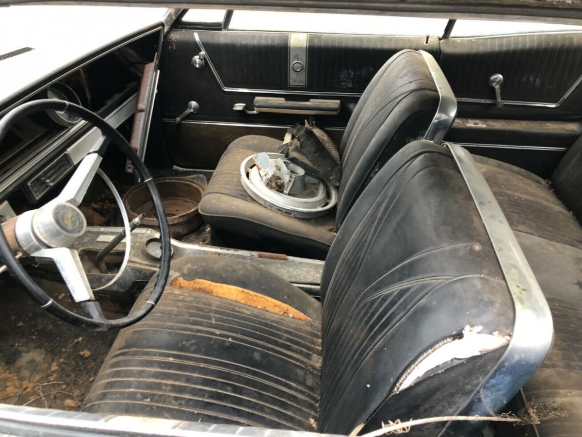 This is supposed to have been the 275 hp version of the venerable Chevy 327 motor, but the seller oddly posts a blurry photo of a valve cover that appears to have a 283 decal on it. So, I’m a bit confused as to what is sitting under the hood. In any event, it doesn’t look like anyone has tried to start this car in quite some time, so expect to find some trouble. The black interior will need a redo, as well, but the SS wears the requisite bucket seats that came with that model.
