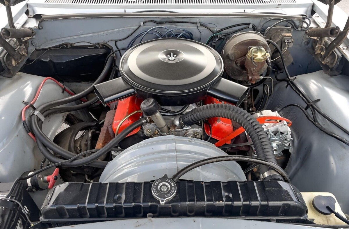 There are a few items under the hood that are not correct as delivered from the factory. First it is the wrong air cleaner. The inner fender wells, fan shroud, and radiator core support should be painted semi-gloss black, not body color. All in all, a very nice 60 year old piece of automotive history. I like it!