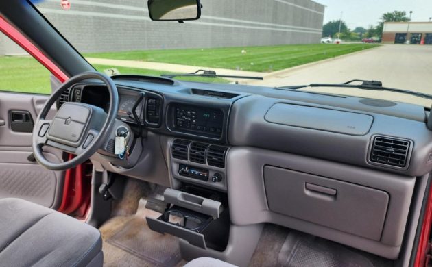 Finished in Radiant Red, this ’94 Voyager looks just like one we had back in the day. Ours had a beige interior instead of the grey here, and it may have had a V6 instead of the 2.5-liter 4-banger in the seller’s van. You don’t see many of these 30-year-old mini’s anymore because they were used up hauling kids to soccer practice. So, finding a Voyager with 32,000 miles might qualify as rare.
