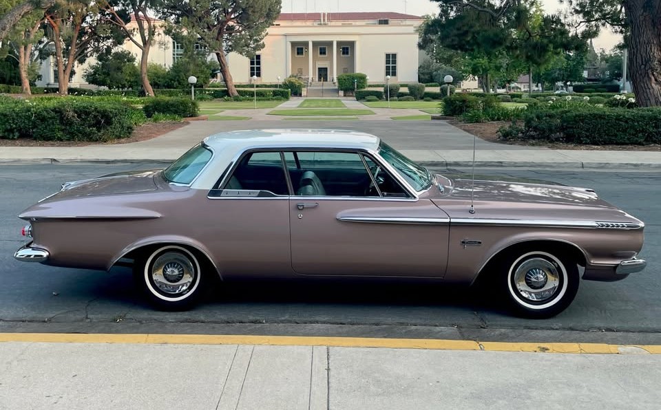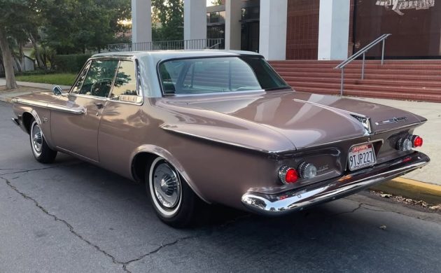 Why the low mileage? No A/C in Southern California! Who wants to drive in the heat and smog with the windows up? My Dad had a ’62 Plymouth 4 door sedan ex highway patrol car. He thought it had a 361 and was really surprised by the power. Over time it needed a valve job and found out that someone had replaced the 361 with a 383! That car would pass anything but a gas station. I was too young to drive it on the highway. But it worked well for me to transport the garbage cans down to the highway and back. (House to highway was 1tenth of a mile. ) This is the first 1962 2 door that I have ever remembered seeing.