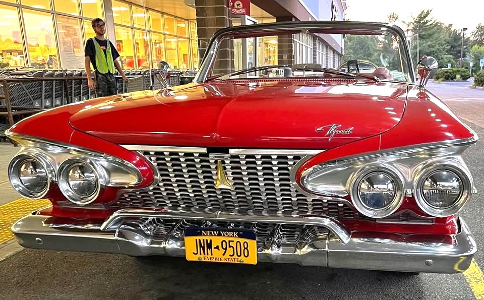 The 1st car I remember my parents pulling our camper, was a ’61 Plymouth wagon. Remember, I was just a lad, 6, 7 years old, VERY bimpressionable( War of the Worlds scared the heck out of me) so naturally, that angry looking face left an indelible mark on a young mind. Who knows how I may have turned out if the old man had an AH Bugeye Sprite. It really is an unusual style( imagine what didn’t make the cut?) and probably as far out as it got to a more traditional ’62. On its styling alone, will remain an oddity, “Jeez, grandpa, no wonder your generation was so whacked out, look what you drove”,,,Be that as it may be, Plymouth sold almost 200,000 ’61 Plymouths and the ’61 Dodge, equally has hideous, sold over 270,000 cars, so go figure. The convertible was the 2nd most expensive, at just over $3,100, the wagon at almost $3200 was the most. Almost a grand more than a base Belvedere, this generally wasn’t what people wanted in a ’61 Plymouth. So unusual the front end was, Hollywood had no problem making it the star in Car 54 Where are you?