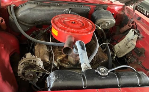 We don’t know if the red paint is original, but the plaid interior is, and it presents as if new. The convertible top (which we don’t get to see in the up position) is said to be new, along with the wide whitewall tires and brakes. It runs and drives well, sporting its factory 318 cubic-inch V8 and pushbutton TorqueFlite tranny. If you’re searching for one of these Mopars, you’re not likely to come out better than this machine, but it will set you back at least “top dollar.” Kudos to T.J. for this “work of art” tip!