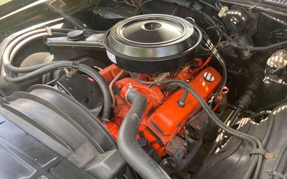 Powering this drop-top is a 165 net HP, 350 CI V8 engine (two-barrel carburetor version), working in concert with a Turbo-Hydramatic three-speed, automatic transmission. The underhood view supports this car’s low mileage claim and all appear to be in stock and original condition. The seller makes no mention of running and driving characteristics but there is no reason to suspect a problem.