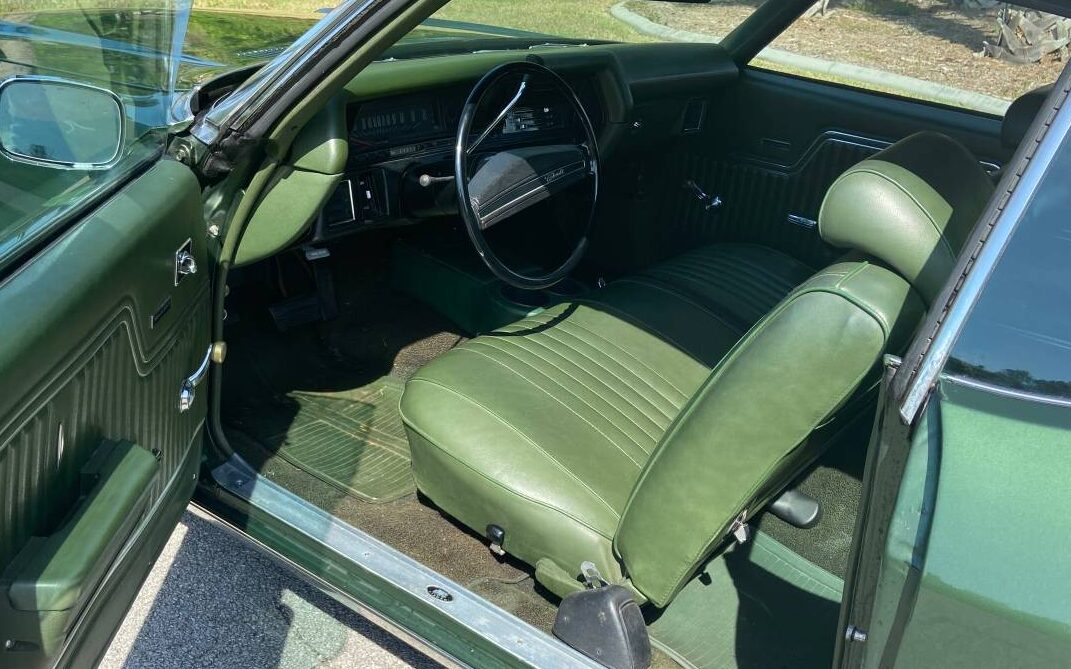 Yes, this one’s a survivor and it looks great. The seller states, “Paint also looks great. Well preserved classic car that has been garage kept all its life. Every body panel is factory and rust-free. The undercarriage is also all original with no signs of rust anywhere“. Sequoia Green was a very popular hue in the late ’60s/early ’70s and it’s one that I still favor today though it, or any variation of it, is seldomly encountered on modern cars. Rust magnets these A-bodies can be, but that’s not the case here – it looks like 1972! Even the convertible top is bright and clean with no signs of ground in mung or folding creases caused by use. Finally, holding up all four corners is round two of Chevrolet’s well-known rally wheel. This version first showed up in ’70 on the Camaro SS and then found its way to other models.